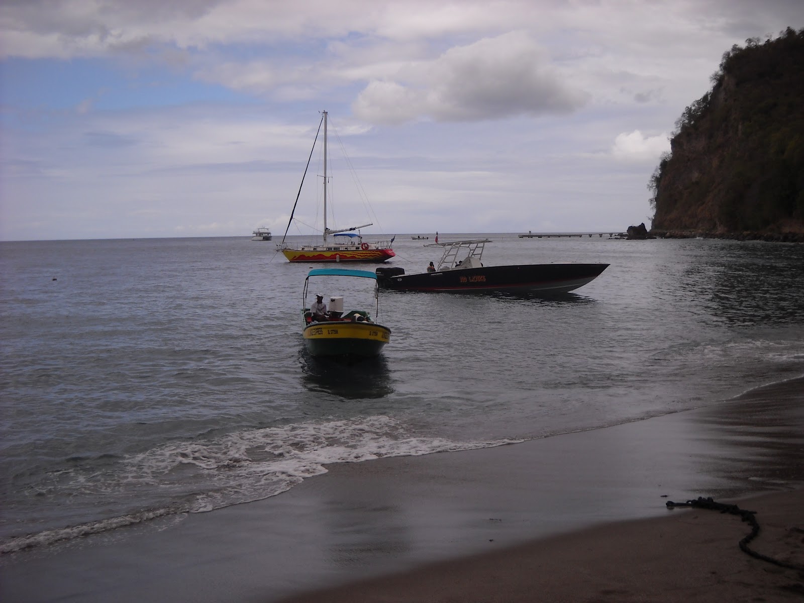 "We have a great tour lined up," exclaimed Peter. "It's a six hour boat ride for $65. We'll motor down the coast to check out some fishing villages, stop at Soufriere where we will get in a van and drive up into the mountains and visit an active volcano and a waterfall in a rainforest, then come back to the boat and head over to the Pitons and a bat cave. On the way back we'll stop at a private nature reserve and go snorkling on a coral reef, and then end our trip with a stop at Marigot Bay before returning back to the ship. Oh, and there will be rum drinks too."